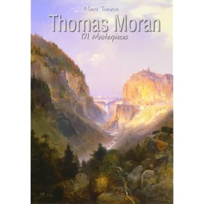 This Art Book with Foreword and annotated reproductions by Maria Tsaneva contains 121 selected watercolors and paintings of Thomas Moran.Thomas Moran was an American painter and printmaker of the Hudson River School in New York whose work often featured the Rocky Mountains. A talented illustrator and exquisite colorist, he was hired as an illustrator at Scribner's Monthly. During the late 1860s, Moran was appointed the chief illustrator of the magazine, a position that helped him launch his career as one of the premier painters of the American landscape. Moran along with Albert Bierstadt, Thomas Hill, and William Keith are sometimes referred to as belonging to the Rocky Mountain School of landscape painters because of all of the Western landscapes made by this group. His vision of the Western landscape was critical to the creation of Yellowstone National Park.